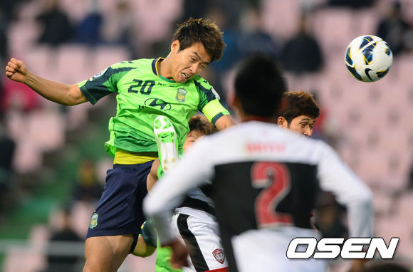 24일 오후 전북 전주시 전주월드컵경기장에서 열린 2013 아시아챔피언스리그(ACL) 전북 현대(한국)와 무앙통 유나이티드(태국)의 경기, 전반 전북 이동국이 헤딩슛을 시도하고 있다