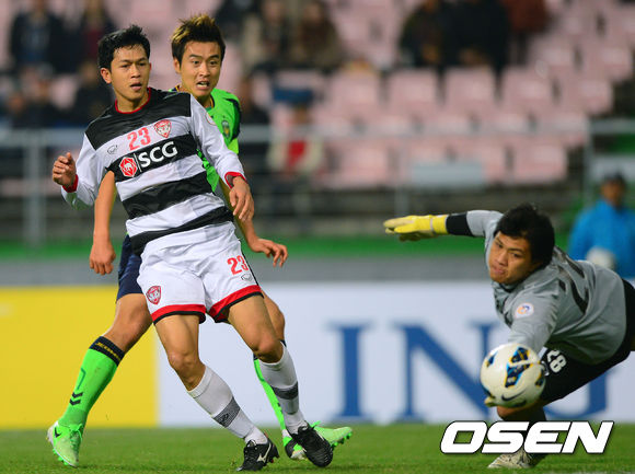 24일 오후 전북 전주시 전주월드컵경기장에서 열린 2013 아시아챔피언스리그(ACL) 전북 현대(한국)와 무앙통 유나이티드(태국)의 경기, 전반 전북 이동국이 슛을 시도하고 있다