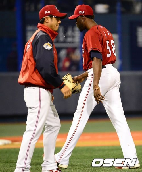 24일 오후 창원 마산야구장에서 열린 2013 한국야쿠르트 세븐프로야구 NC 다이노스와 KIA 타이거즈의 경기, 4회말 무사 만루에서 NC 김종호 타석 때 KIA 선발 투수 소사가 마운드를 내려가고 있다.