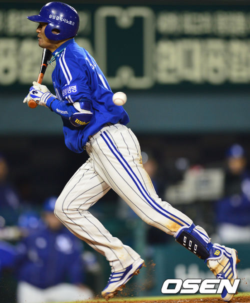 24일 오후 서울 잠실야구장에서 '2013 한국야쿠르트 세븐 프로야구' LG 트윈스 대 삼성 라이온즈의 경기가 열렸다. 7회초 삼성 공격 1사 1루 상황 9번 김상수가 LG 선발 리즈의 투구에 몸을 맞고 있다.