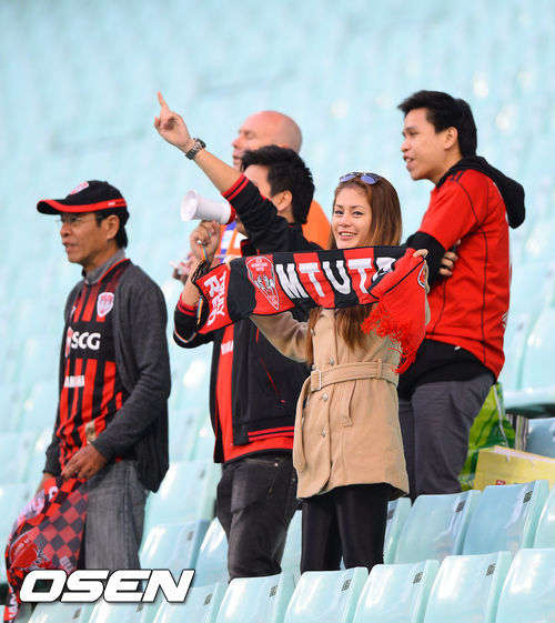 24일 오후 전북 전주시 전주월드컵경기장에서 열린 2013 아시아챔피언스리그(ACL) 전북 현대(한국)와 무앙통 유나이티드(태국)의 경기, 무앙통 서포터즈가 열띤 응원을 펼치고 있다