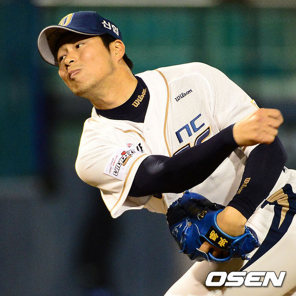 24일 오후 창원 마산야구장에서 열린 2013 한국야쿠르트 세븐프로야구 NC 다이노스와 KIA 타이거즈의 경기, 5회초 1사에서 NC 고창성이 힘차게 공을 던지고 있다.