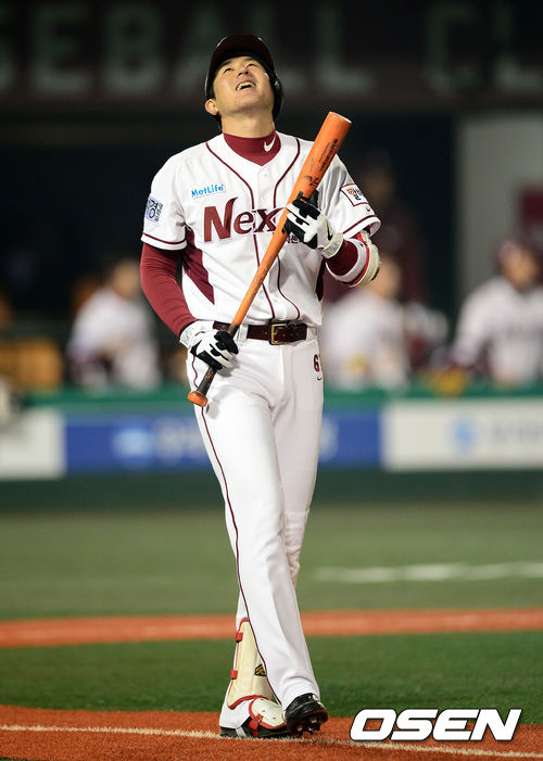24일 오후 서울 목동야구장에서 열린 '2013 한국야쿠르트 세븐 프로야구' 넥센 히어로즈와 두산 베어스의 경기, 7회말 2사 만루에서 넥센 유한준이 홈런성 타구가 파울이 되자 아쉬워하고 있다.