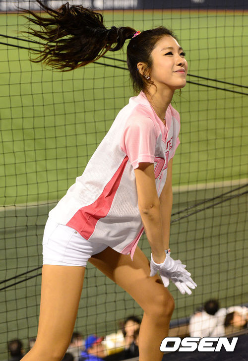 24일 오후 창원 마산야구장에서 열린 2013 한국야쿠르트 세븐프로야구 NC 다이노스와 KIA 타이거즈의 경기, NC 치어리더 김연정이 화려한 공연을 펼치고 있다.