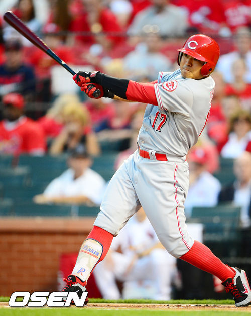 경기를 두 시간 지연시킨 비도 추신수(31, 신시내티 레즈)의 거침없는 행진을 막지는 못했다. 추신수가 멀티히트와 함께 연속 출루 기록을 34경기로 연장했다.