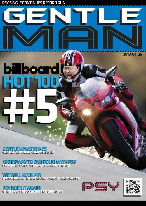 공개된 사진에서 싸이는 빨간색 바이크를 타고 질주하는 모습. 옆에는 빌보드 내 '젠틀맨'의 순위를 의미하는 굵은 글자가 적혀 있다.