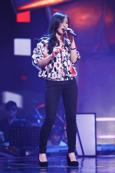 유다은은 오는 26일 방송에 앞서 '보이스 코리아2' 제작진이 공개한 KO라운드 녹화 현장 사진에서 스키니한 다리 라인과 긴 생머리, 눈웃음으로 섹시하면서도 여성스러운 아름다움을 과시했다.