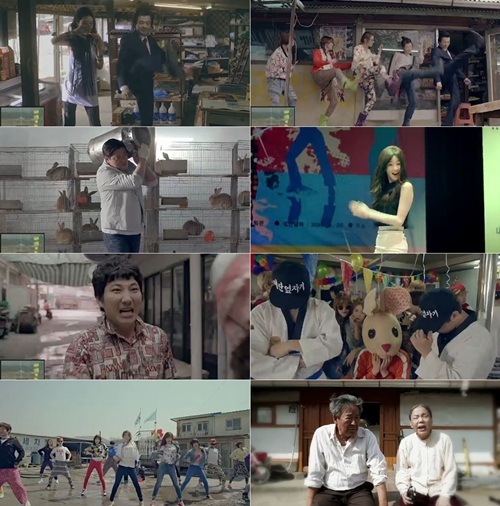 공개된 영상 속에는 앞서 드라마 '전원일기'에서 호흡을 맞췄던 배우 최불암과 김수미는 물론 짐을 나르고 있는 야구선수 양준혁, 축지법과 공중부양을 시도하는 허경영, '통춤'을 추는 다비치 멤버 강민경의 모습 등 웃음포인트가 쏟아졌다. 해당곡을 만든 작곡가팀 이단옆차기의 모습도 눈에 띄었다.
