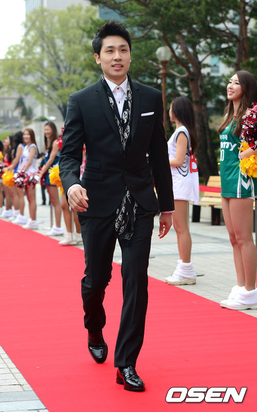 25오후 서울 광진구 건국대 새천년 기념관에서 진행된 '2012-2013 KB국민카드 프로농구 시상식'에서 앞서 진행된 레드카펫 행사에서 KGC 김태술이 레드카펫을 밟고 있다.