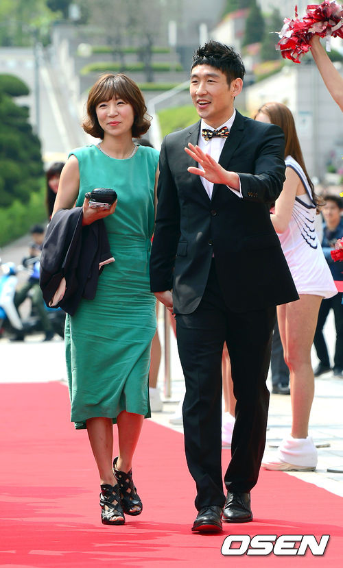 25오후 서울 광진구 건국대 새천년 기념관에서 진행된 '2012-2013 KB국민카드 프로농구 시상식'에서 앞서 진행된 레드카펫 행사에서 모비스 양동근이 부인과 레드카펫을 밟고 있다.