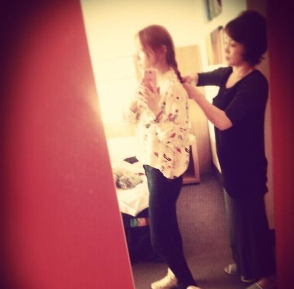 공개된 사진에는 머리를 땋아주고 있는 태연의 어머니와 소녀의 상큼함을 과시하는 태연의 모습이 담겨있다. 특히 두 사람은 마치 그림 같이 아름다운 모녀의 다정함을 연출하고 있어 눈길을 끈다.