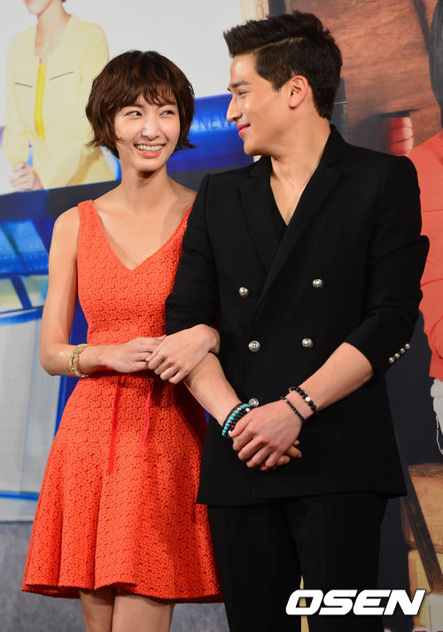배우 유건과 이해인이 25일 오후 서울 여의도 63빌딩에서 열린 KBS 저녁 일일극 '지성이면 감천' 제작발표회에 참석해 포토타임을 갖고 있다.
