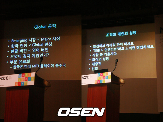 배재현 부사장은 25일 서울 삼성동 코엑스 컨퍼런스룸에서 열린 '넥슨 개발자 컨퍼런스 13(NDC 13)'에서 ‘차세대 게임과 한국 온라인게임의 미래’라는 주제로 업계 관계자들에게 레드오션이 된 국내 시장보다는 이제는 글로벌 시장 공략에 나서야 하고, 10년 넘게 정체되어 있는 게임사들의 체질 개선에 대해서도 목소리를 높였다.