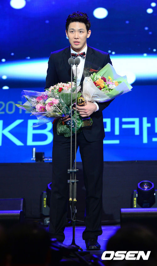 25오후 서울 광진구 건국대 새천년 기념관에서 진행된 '2012-2013 KB국민카드 프로농구 시상식'에서 신인선수상에 선정된 SK 최부경이 수상소감을 전하고 있다.