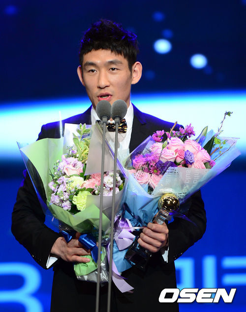 25오후 서울 광진구 건국대 새천년 기념관에서 진행된 '2012-2013 KB국민카드 프로농구 시상식'에서 베스트5 가드에 선정된 모비스 양동근이 수상소감을 전하고 있다.