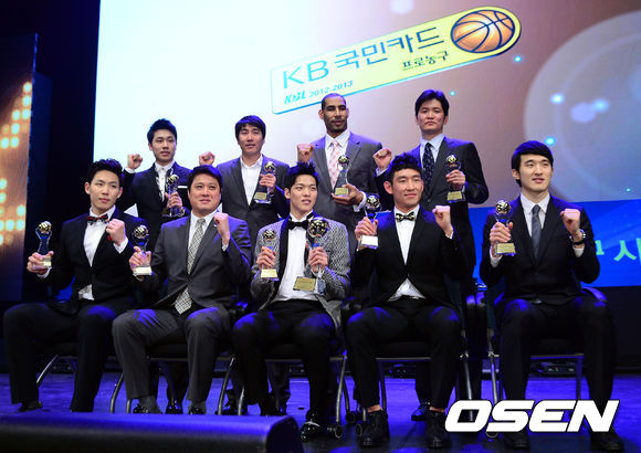 25오후 서울 광진구 건국대 새천년 기념관에서 진행된 '2012-2013 KB국민카드 프로농구 시상식'에서 수상자들이 포토타임을 갖고 있다.