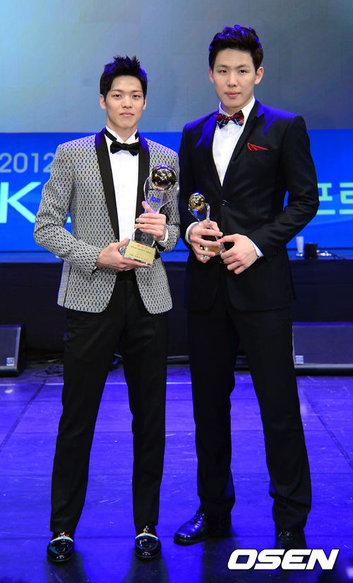25오후 서울 광진구 건국대 새천년 기념관에서 진행된 '2012-2013 KB국민카드 프로농구 시상식'에서 정규리그 MVP에 선정된 SK 김선형과 신인상을 수상한 SK 최부경이 포토타임을 갖고 있다.