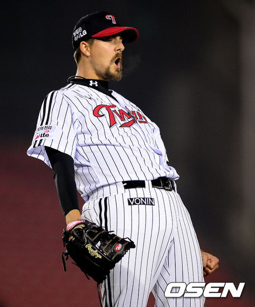 25일 오후 서울 잠실야구장에서 열린 '2013 한국야쿠르트 세븐 프로야구' LG 트윈스와 삼성 라이온스의 경기, 7회초 1사 1,2루에서 LG 주키치가 삼성 진갑용의 내야땅볼에 병살에 실패하자 아쉬워하고 있다.