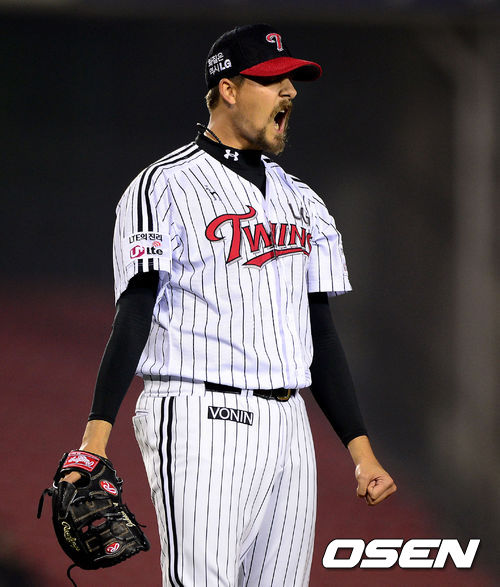 25일 오후 서울 잠실야구장에서 열린 '2013 한국야쿠르트 세븐 프로야구' LG 트윈스와 삼성 라이온스의 경기, 7회초 1사 1,2루에서 LG 주키치가 삼성 진갑용의 내야땅볼에 병살에 실패하자 아쉬워하고 있다.