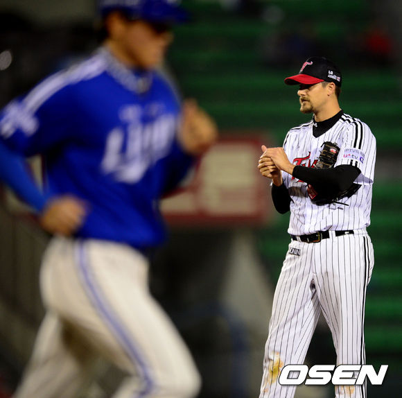 25일 오후 서울 잠실야구장에서 열린 '2013 한국야쿠르트 세븐 프로야구' LG 트윈스와 삼성 라이온스의 경기, 7회초 2사 만루에서 LG 주키치가 삼성 배영섭에 밀어내기 볼넷을 허용하고 있다.