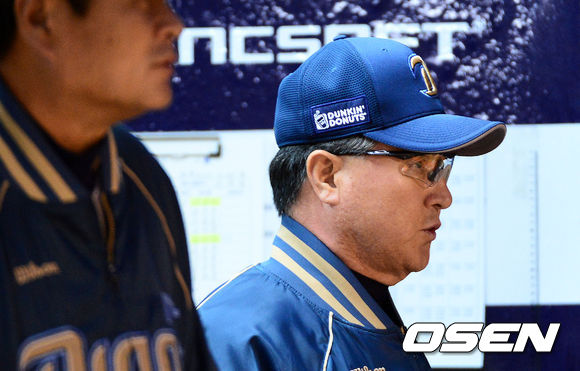 25일 오후 창원 마산야구장에서 열린 2013 한국야쿠르트 세븐프로야구 NC 다이노스와 KIA 타이거즈의 경기, 8회말 1사에서 NC 김경문 감독이 경기를 바라보고 있다.