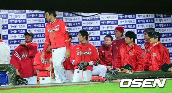 25일 오후 부산 사직구장에서 열린 '2013 한국야쿠르트 세븐 프로야구' 롯데 자이언츠와 SK 와이번스의 경기 종료 후 SK 선수들이 덕아웃을 빠져나가고 있다.