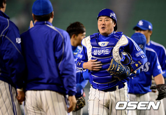 경기후 삼성 진갑용이 가슴을 쓸어내리고 있다./jpnews@osen.co.kr