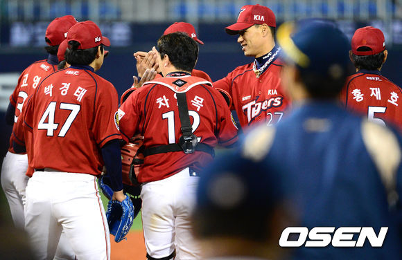 경기 종료 후 KIA 선수들이 승리의 기쁨을 나누고 있다. /sunday@osen.co.kr
