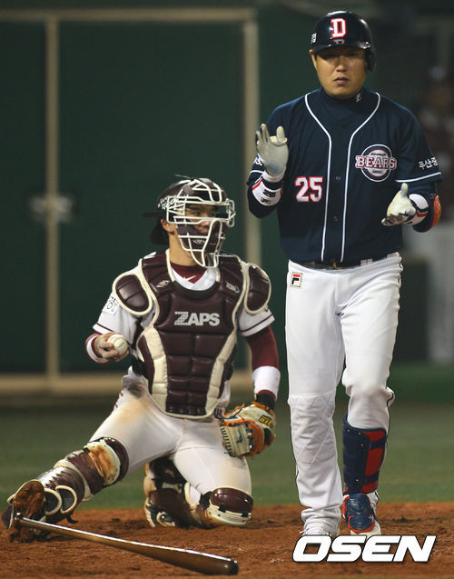 3회 1사 후 이종욱이 볼넷으로 출루했다. 강윤구는 민병헌에게 우중간 2루타를 맞고 1사 2,3루 위기를 자초했다. 김현수의 땅볼을 잡은 1루수 박병호가 홈 송구 실책을 저지르며 순식간에 2명의 주자가 모두 홈을 밟았다.