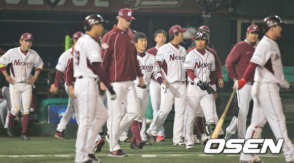 25일 오후 서울 목동구장에서 '2013 한국야쿠르트 세븐 프로야구' 넥센 히어로즈 대 두산 베어스의 경기가 열렸다. 패배한 넥센 선수들이 팬들에게 인사하기 위해 그라운드로 나오고 있다.
