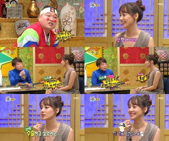 유진은 25일 방송된 MBC 예능프로그램 '황금어장-무릎팍도사(이하 '무릎팍')'에서 "성형수술을 하지 않았다"라고 밝혔다.