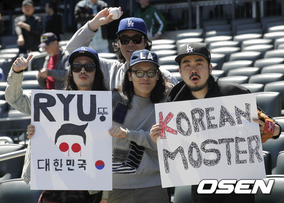 류현진의 팬들이 플래카드를 들고 응원을 하고 있다. /photo@osen.co.kr