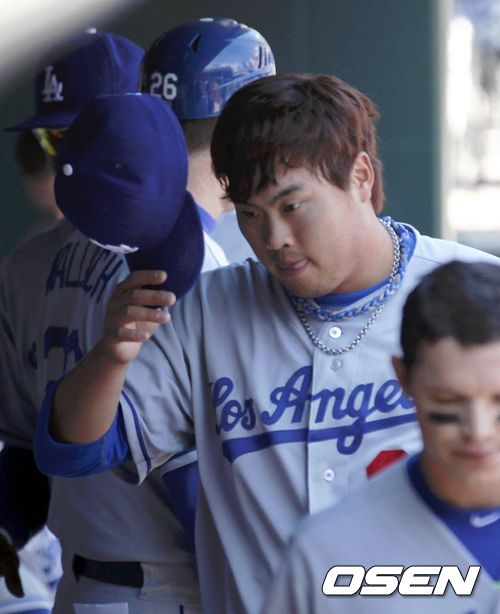 류현진이 6회말 수비를 마치고 더그아웃으로 들어서고 있다. /photo@osen.co.kr