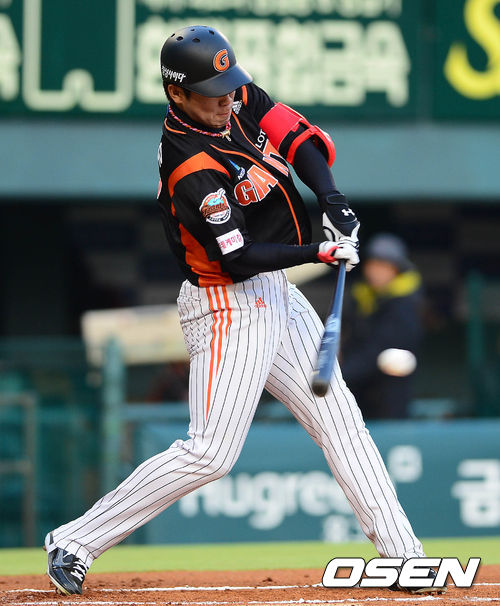 26일 오후 서울 잠실구장에서 열린 '2013 한국야쿠르트 세븐 프로야구' LG 트윈스와 롯데 자이언츠의 경기 2회초 1사 전준우가 중전안타를 치고 있다.