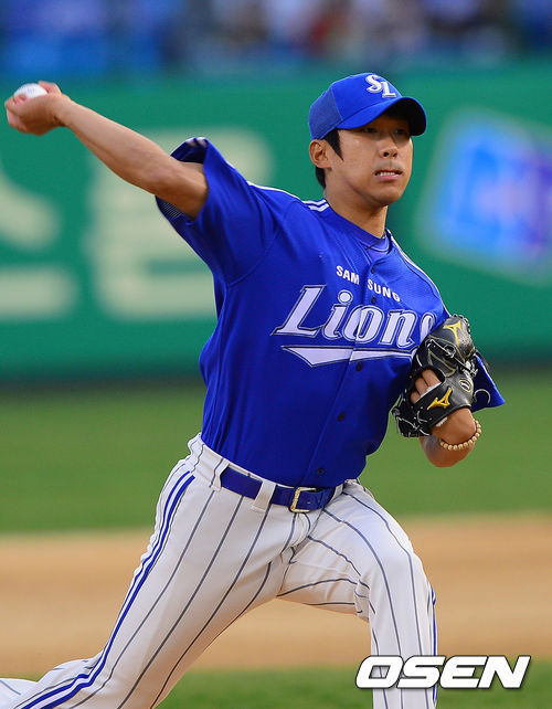 26일 오후 광주 무등구장에서 열린 '2013 한국야쿠르트 세븐 프로야구' KIA 타이거즈와 삼성 라이온즈의 경기, 1회말 삼성 선발투수 윤성환이 역투하고 있다