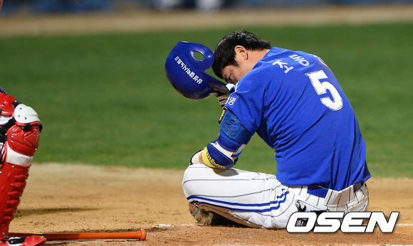 26일 오후 광주 무등구장에서 열린 '2013 한국야쿠르트 세븐 프로야구' KIA 타이거즈와 삼성 라이온즈의 경기, 7회초 삼성 선두타자 조동찬이 KIA 김진우의 몸쪽 가까운 공에 놀라고 있다