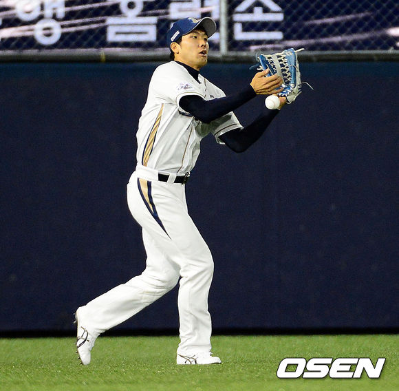 26일 오후 창원 마산야구장에서 열린 2013 한국야쿠르트 세븐프로야구 NC 다이노스와 두산 베어스의 경기, 6회초 2사 1,3루에서 NC 조평호가 두산 이종욱의 타구를 놓치고 있다.