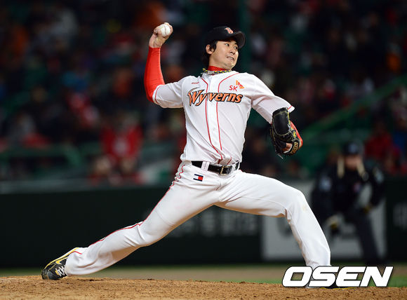 26일 오후 인천 문학야구장에서 열린 2013 한국야쿠르트 세븐프로야구 SK 와이번스와 한화 이글스의 경기, 7회초 SK 윤희상이 역투하고 있다.
