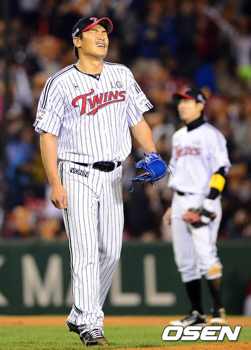 26일 오후 서울 잠실구장에서 열린 '2013 한국야쿠르트 세븐 프로야구' LG 트윈스와 롯데 자이언츠의 경기 7회초 2사 2루 전준우의 내야땅볼 상황, 이동현이 1루로 송구한 공이 빠지며 실책으로 이어지자 아쉬운 표정을 짓고 있다. 2루주자 손아섭은 득점, 전준우는 2루까지 진루.