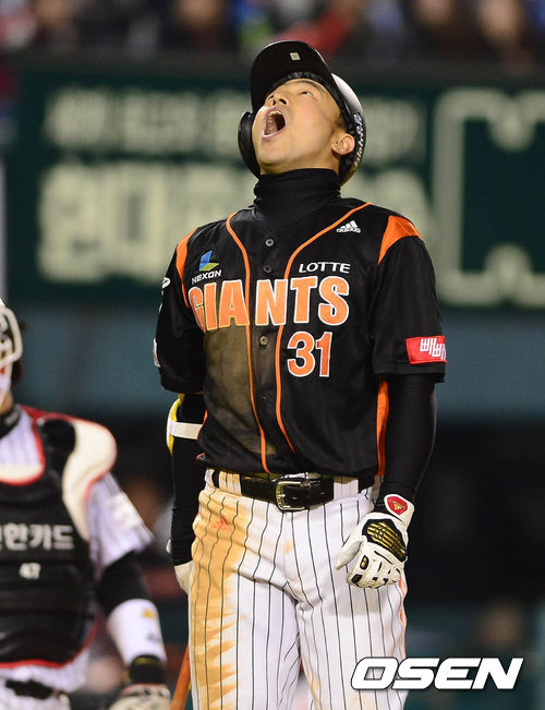26일 오후 서울 잠실구장에서 열린 '2013 한국야쿠르트 세븐 프로야구' LG 트윈스와 롯데 자이언츠의 경기 8회초 2사 1루 손아섭이 파울을 친 후 아쉬워하고 있다.