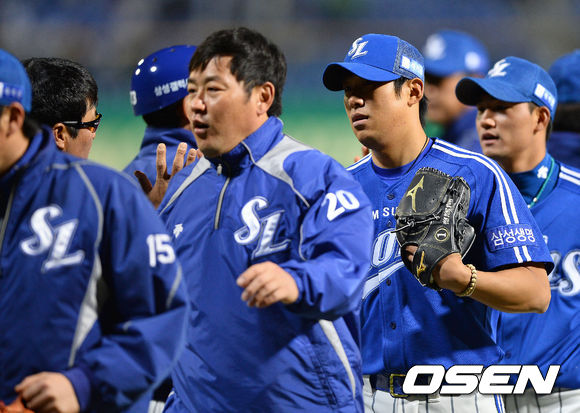 경기종료 후 생애 첫 완봉승을 거둔 삼성 윤성환이 동료들과 기쁨을 나누고 있다./ soul1014@osen.co.kr