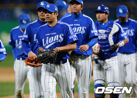 경기종료 후 생애 첫 완봉승을 거둔 삼성 윤성환이 동료들과 기쁨을 나누고 있다./ soul1014@osen.co.kr