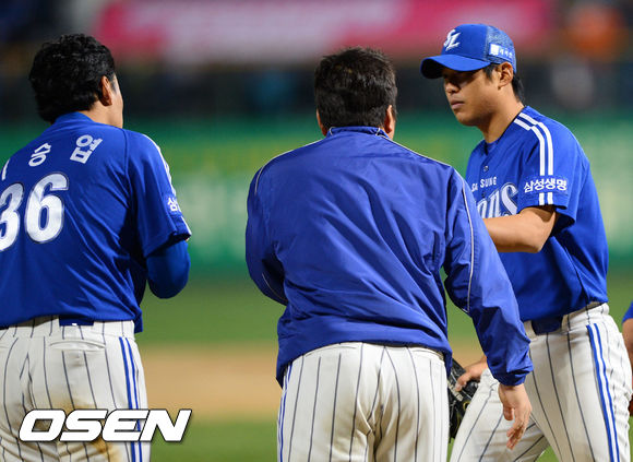 경기종료 후 생애 첫 완봉승을 거둔 삼성 윤성환이 동료들과 기쁨을 나누고 있다./ soul1014@osen.co.kr