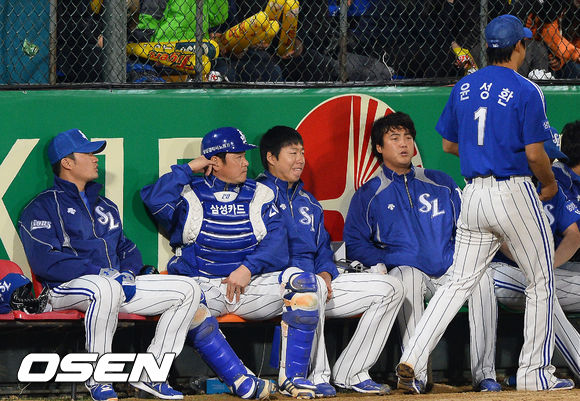 9회초 삼성 오승환과 진갑용이 윤성환을 바라보고 있다./ soul1014@osen.co.kr