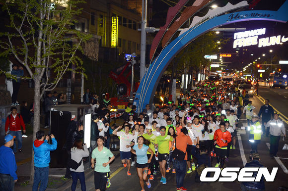한편, 나이키 이태원 프리런 참가자 전원에게는 본격적인 러닝에 앞서, 드라이핏(DRI-FIT) 티셔츠를 제공하고 형광 페인팅으로 본인의 러닝 메시지를 적은 ‘네온 레이스 티셔츠’를 만들 수 있도록 해 특별함을 더했다. 형광색 티셔츠와 형광 팔찌 등을 착용한 500명의 러너들이 네온사인으로 화려하게 꾸며진 이태원 밤 거리와 어우러져 독특한 광경을 만들어냈다. /ouxou@osen.co.kr