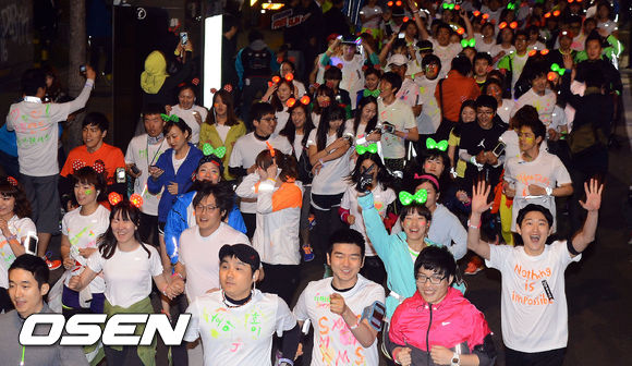 한편, 나이키 이태원 프리런 참가자 전원에게는 본격적인 러닝에 앞서, 드라이핏(DRI-FIT) 티셔츠를 제공하고 형광 페인팅으로 본인의 러닝 메시지를 적은 ‘네온 레이스 티셔츠’를 만들 수 있도록 해 특별함을 더했다. 형광색 티셔츠와 형광 팔찌 등을 착용한 500명의 러너들이 네온사인으로 화려하게 꾸며진 이태원 밤 거리와 어우러져 독특한 광경을 만들어냈다. /ouxou@osen.co.kr