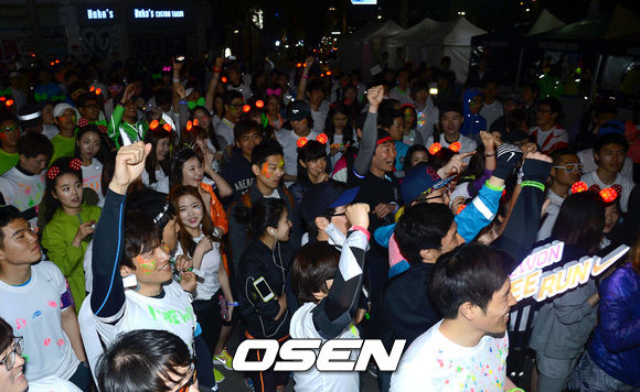 한편, 나이키 이태원 프리런 참가자 전원에게는 본격적인 러닝에 앞서, 드라이핏(DRI-FIT) 티셔츠를 제공하고 형광 페인팅으로 본인의 러닝 메시지를 적은 ‘네온 레이스 티셔츠’를 만들 수 있도록 해 특별함을 더했다. 형광색 티셔츠와 형광 팔찌 등을 착용한 500명의 러너들이 네온사인으로 화려하게 꾸며진 이태원 밤 거리와 어우러져 독특한 광경을 만들어냈다. /ouxou@osen.co.kr