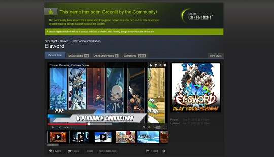게임회사 KOG는 ‘엘소드’ 북미 서비스가 Valve사의 게임 포털 ‘스팀’의 그린라이트에서 인기 게임 Top 5에 선정되었다고 18일 밝혔다. 그린라이트는 세계 최대의 게임 유통 플랫폼인 스팀의 서비스로 스팀 그린라이트에 등록된 게임 중에서 사용자들이 직접 인기 게임을 선정하는 서비스이다.