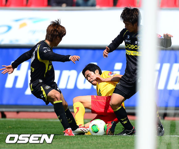 27일 오후 현대오일뱅크 K리그 클래식 2013 9라운드 성남 일화와 전남 드래곤즈의 경기가 경기도 성남시 탄천종합운동장에서 열렸다. 전반 성남 현영민이 돌파를 시도하고 있다.