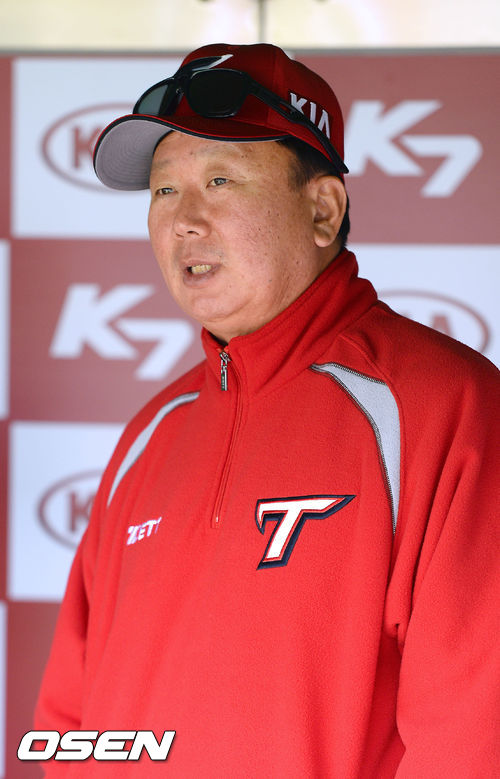 27일 오후 광주 무등구장에서 열리는 '2013 한국야쿠르트 세븐 프로야구' KIA 타이거즈와 삼성 라이온즈의 경기, 경기에 앞서 KIA 선동렬 감독이 미소 짓고 있다